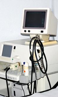 | Die Ultraschalluntersuchung (Sonographie) gehört zu den bildgebenen Verfahren. Diese Untersuchung ist völlig nebenwirkungsfrei. Mit Hilfe von Ultraschallwellen werden die inneren Organe sichtbar gemacht. Ultraschalluntersuchungen können an den Gelenken, den Organen im Ober- und Unterbauch, an der Schilddrüse und am Herzen (letztere Untersuchung wird auch Echokardiographie genannt) durchgeführt werden. In der rheumatologischen Diagnostik wird die Sonographie häufig eingesetzt, um Gelenksveränderungen frühzeitig zu erkennen.